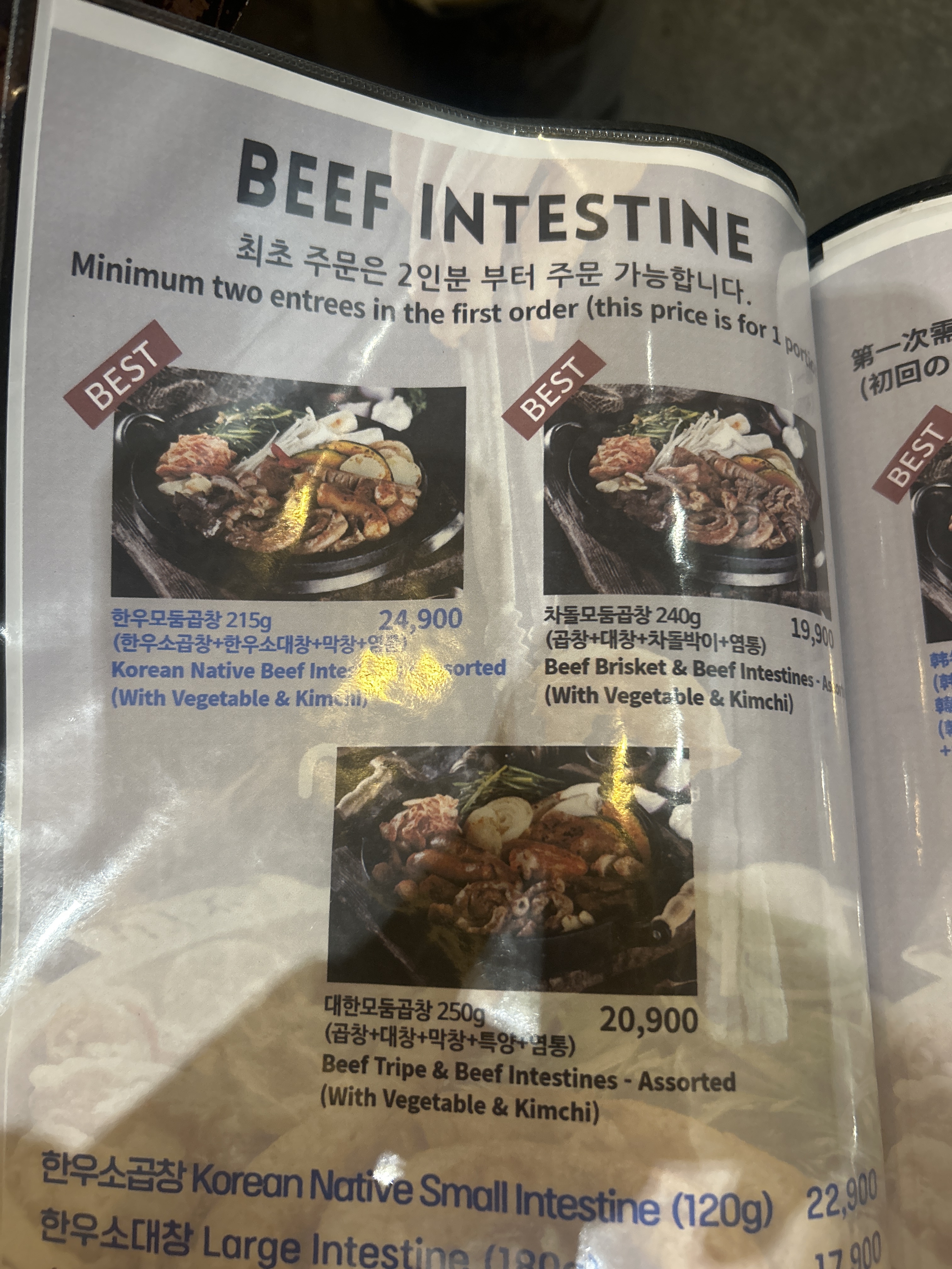 한우 곱창 1인분만 더 주문하고 먹는데