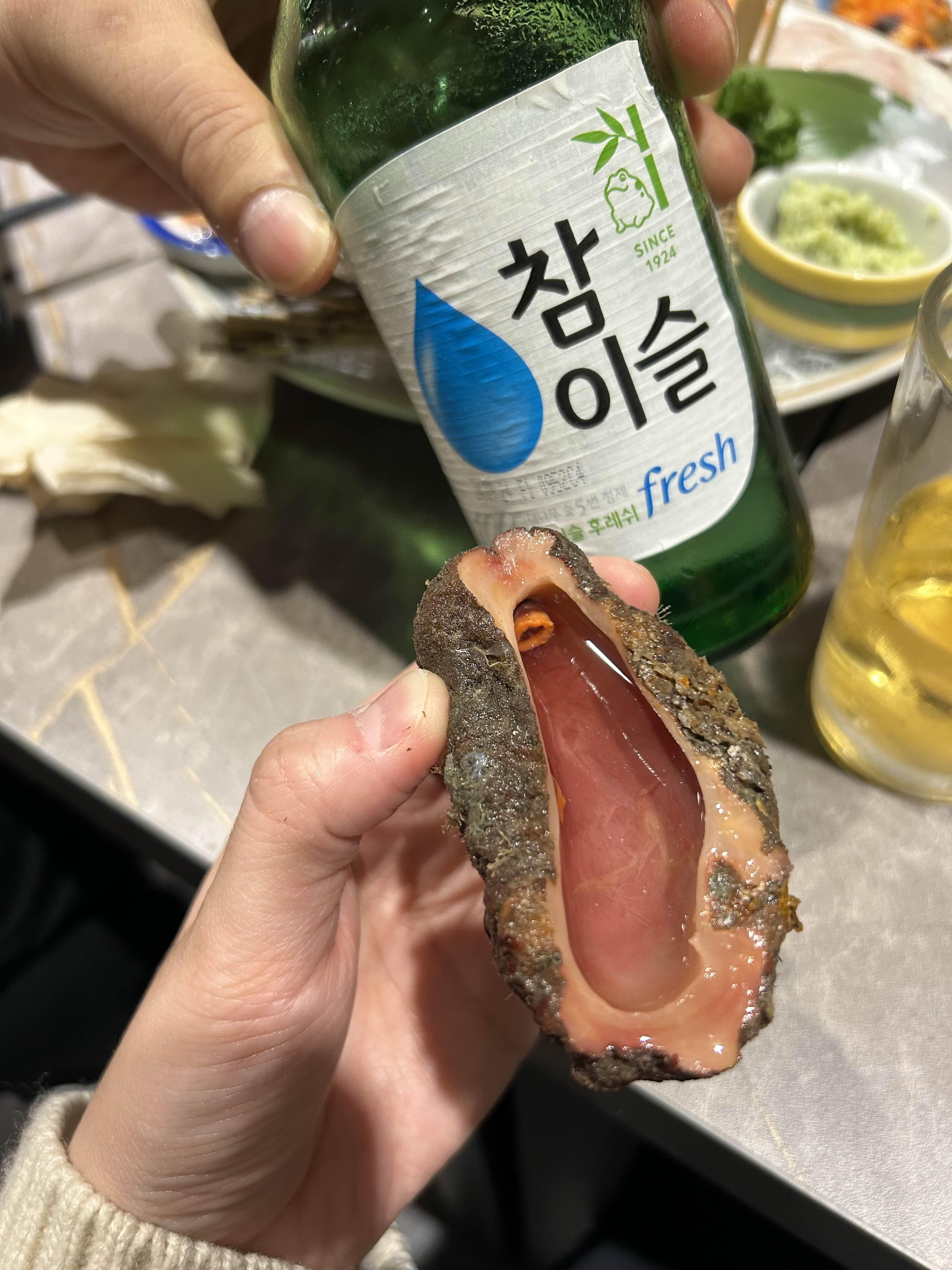 평상시 술 못 드시는 엄마도 귀한 돌멍게소주는 한잔 하셨다