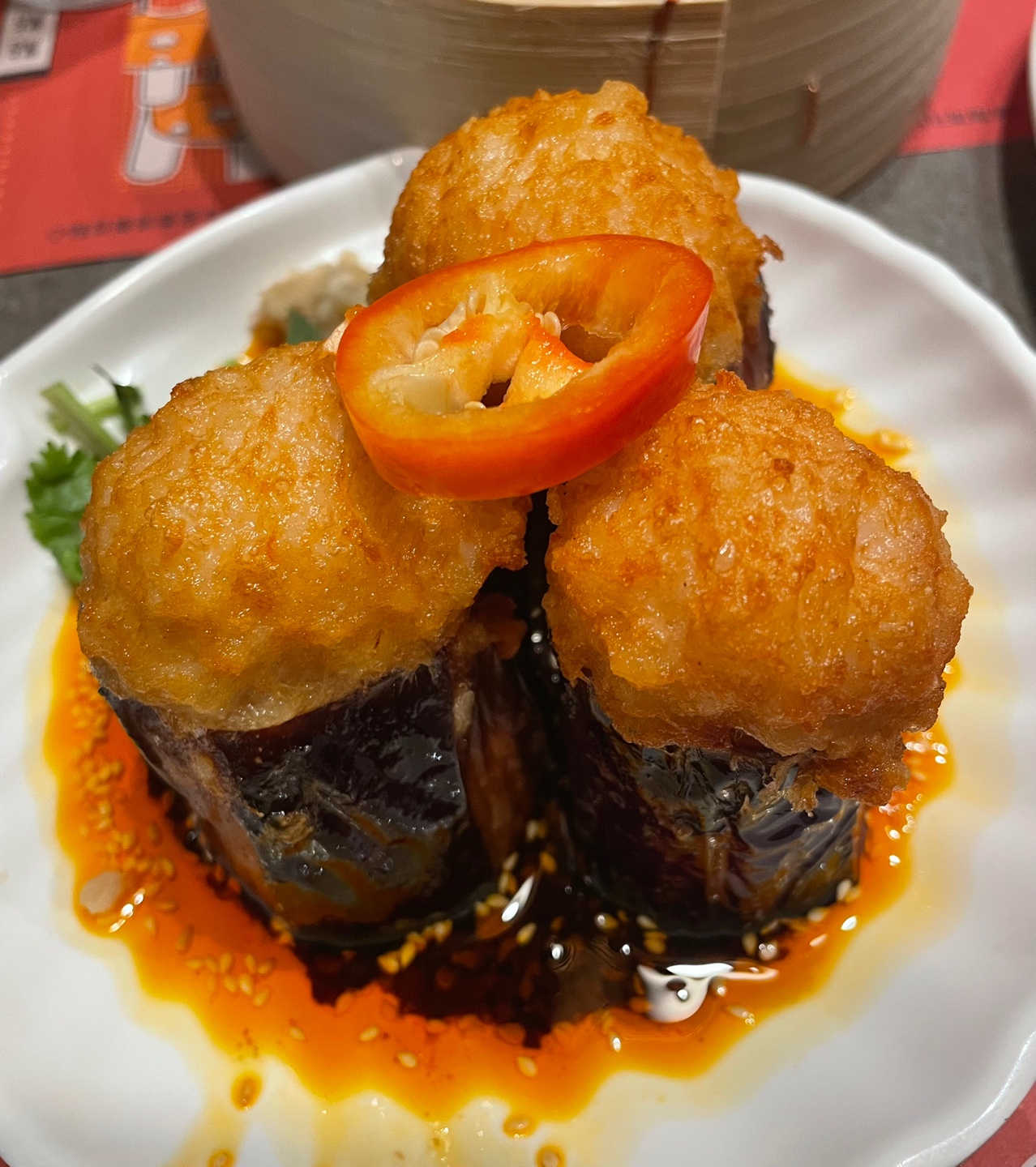 가지딤섬(Seafood stuffed eggplant with spicy sichuan sauce)